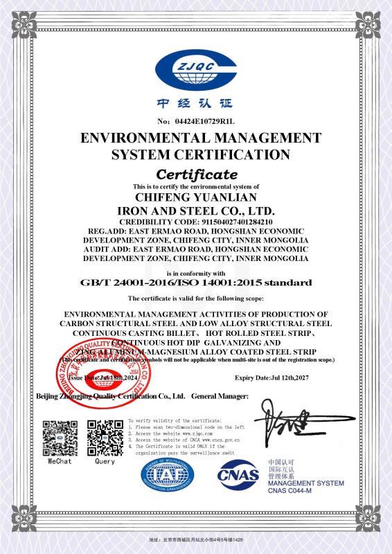 環(huán)境管理體系認(rèn)證證書(shū)